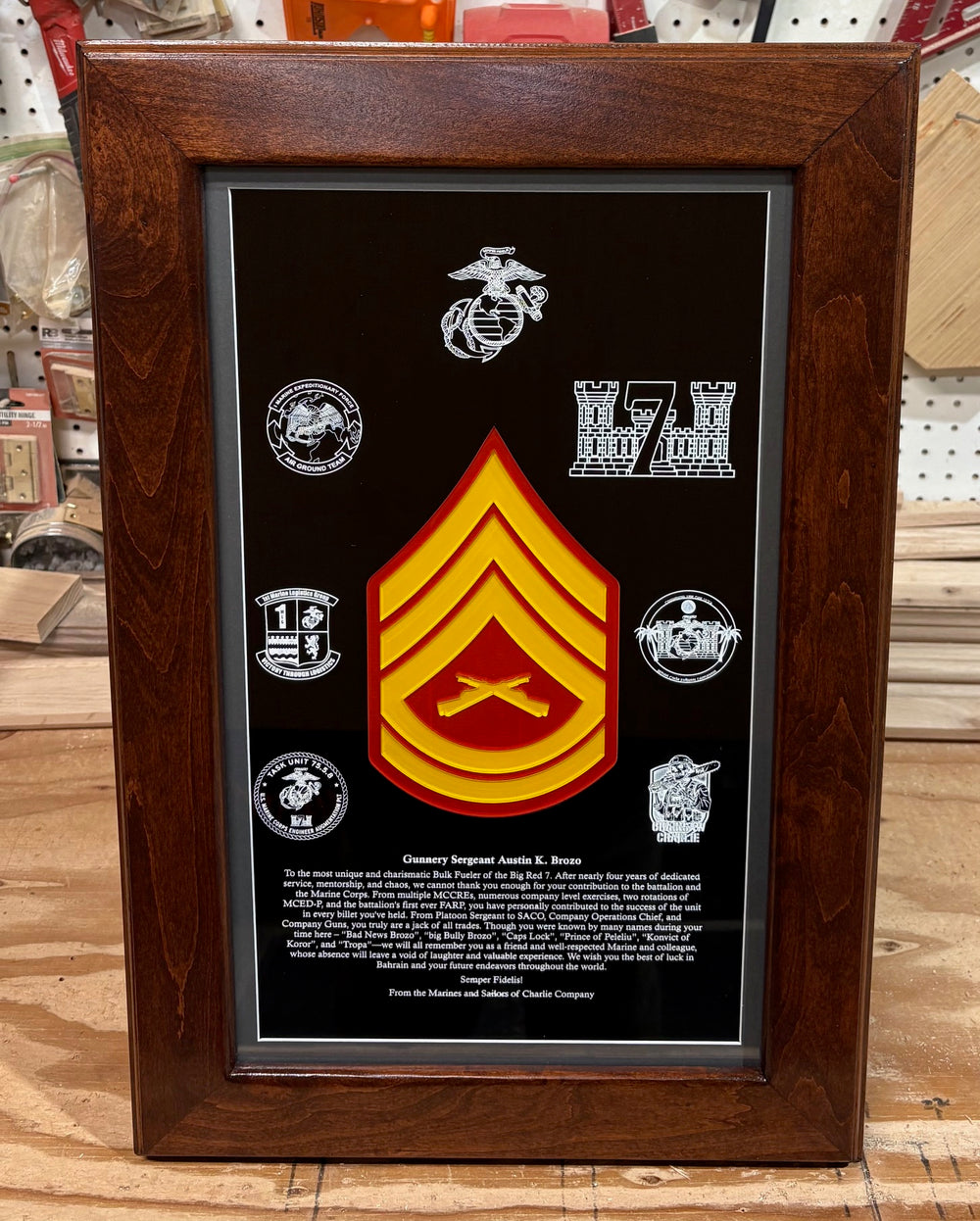 Fast, custom military plaques for retirements, promotions, and going aways—delivered with honor and precision.
